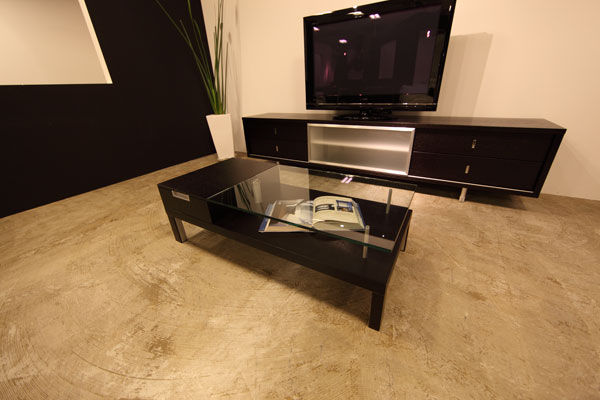 札幌市中央区 I様邸 3m20cmのカウチソファ(ブラックレザー)に合わせてリビングテーブをご購入戴きました♪ テレビは壁掛けで2m40cmの大型テレビ台を合わせて戴きました。