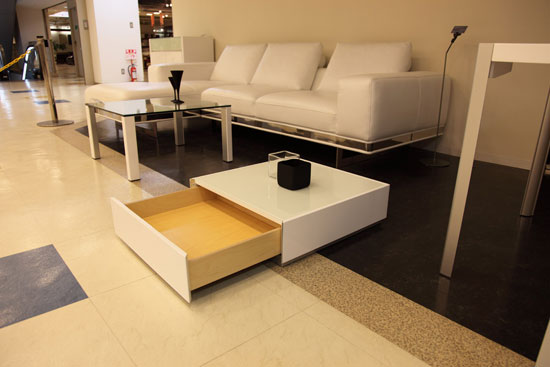 > 正方形 白色鏡面仕上げ リビングテーブル