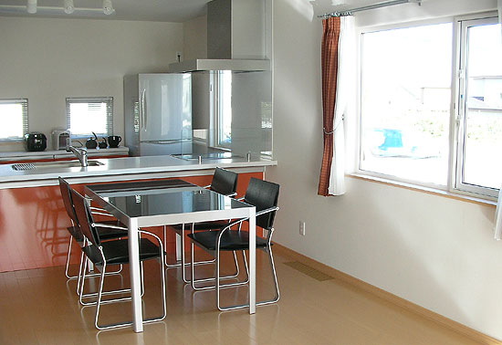 栗山町 A様邸 とっても素敵なTOTOのアイランドキッチンに グレーガラスのダイニングテーブルを合せて戴きました♪