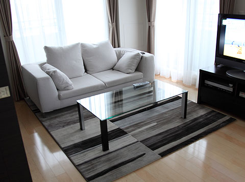 2m x 2m のラグマットとガラスリビングテーブルをご購入戴きました♪