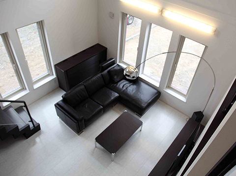 岡山県倉敷市 O様邸 「1階は約38畳の1フロアにしているのですが、 ダイニングテーブルとリビングテーブルは、実はリビングの北側と南側に設置しています。 自宅が北海道に近かったら、ぜひ見に来ていただきたいくらいイメージどおりで、とてもとても気にいっています。 遊びに来てくれた方も、リビングに統一されたテーブルが二つあると気になるようで、 よく聞かれますので自慢しながら SIMPLE PLEASURE さんの宣伝してます★ 小さい子供がいるので、ガラステーブルは少し心配もあったのですが どうしてもこのリビングには色的にもイメージ的にもガラスしかないと思いました。 おしゃれでシンプルで(^-^) 購入できて本当に良かったと感謝してます。」