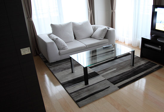 帯広市 S様邸 グレーガラスのセンターテーブルと ブラックチェックのカウチソファーをご購入戴きました♪