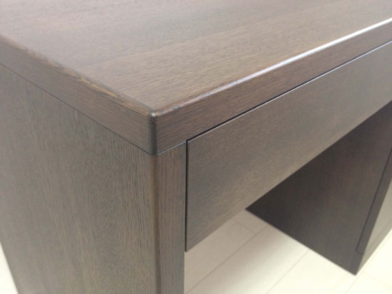 デスクの一部は少し丸みを付けての仕上げを希望されました。 現在はリビング、ダイニングルームの入り口にデッドスペースがありまして 全体的に収納が不足しているとの事ですので 電話を置ける奥行きの薄いキャビネットをご相談戴いております。