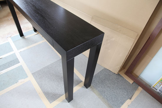 オーダーコンソール W1500 D330 H750mm ナラ薄突 ブラック 7分艶消 引出3はい ノックダウン式