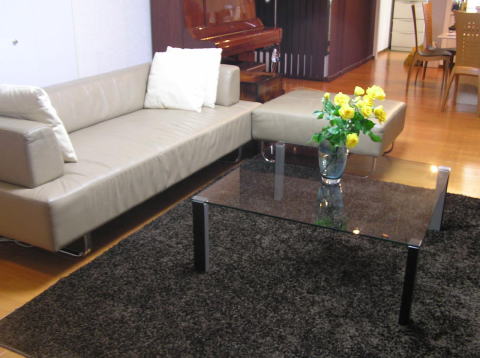 正方形のガラスリビングテーブルをご購入戴きました♪