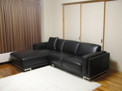 ブラックレザーのカウチソファをご購入戴きました♪