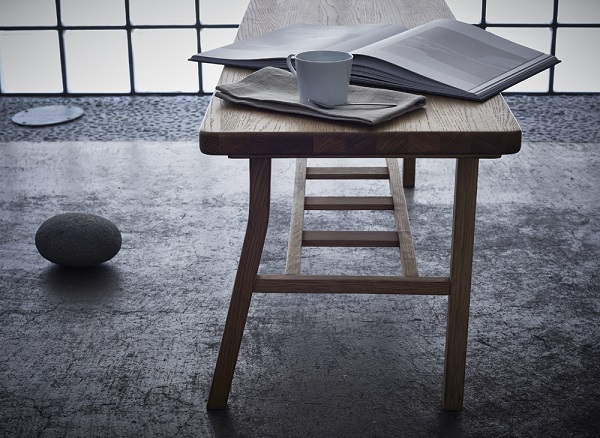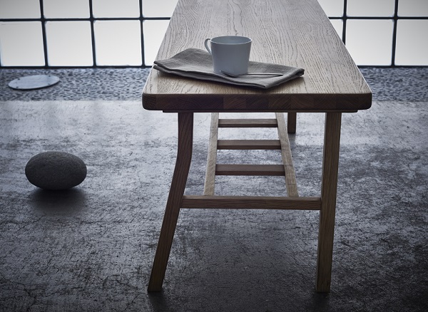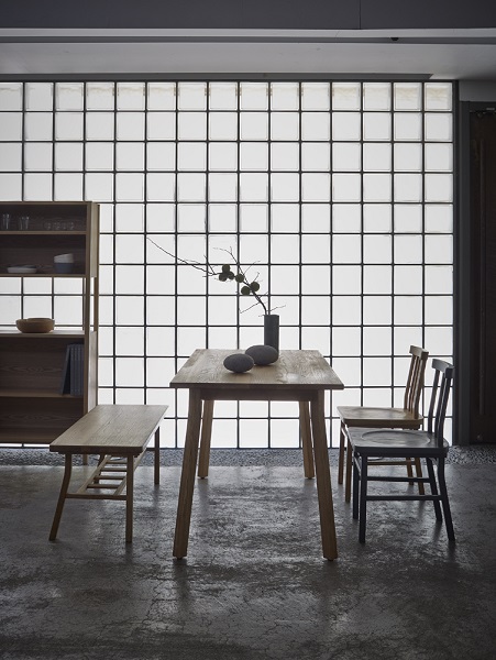 伝統的な意匠と新しい感覚を融合させたダイニングベンチ。 本や小物の収納に便利な棚付きです。 まるで後ろ脚が跳ね上がってるように見える曲線が面白いと思いませんか? リビングテーブルとしても使えるベンチです。