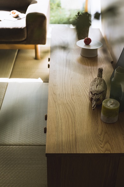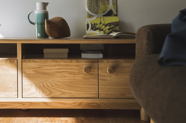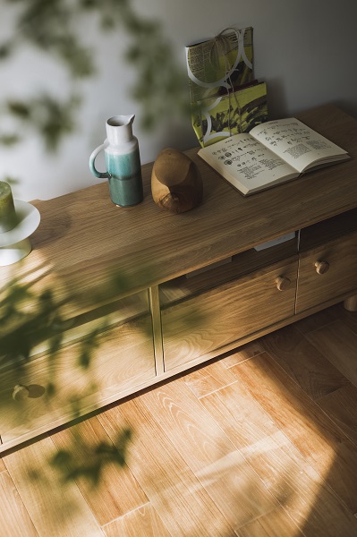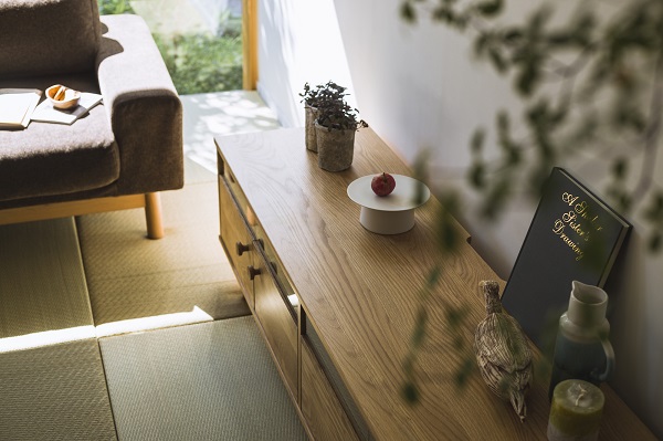 開き戸の上部に透明のクリアガラスがあるテレビボード・ローボードです。