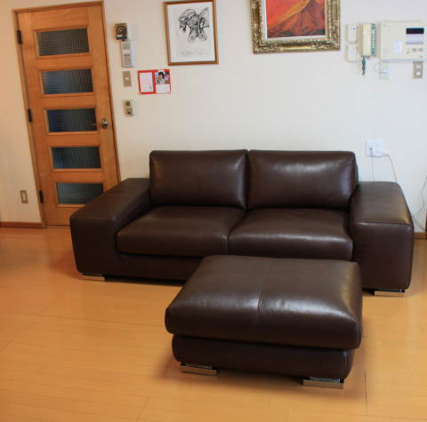 札幌市西区琴似 Y様邸 2人掛けレザーソファとスツールをご注文戴きました♪