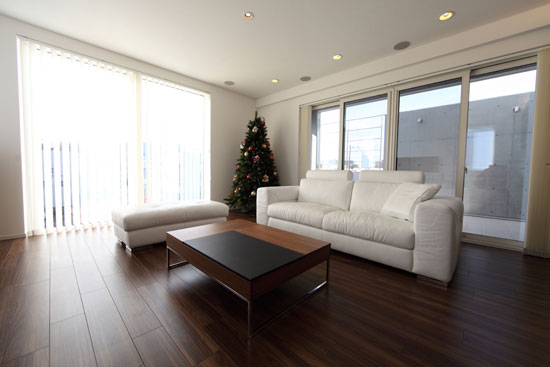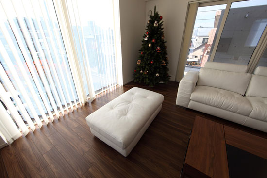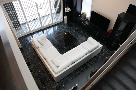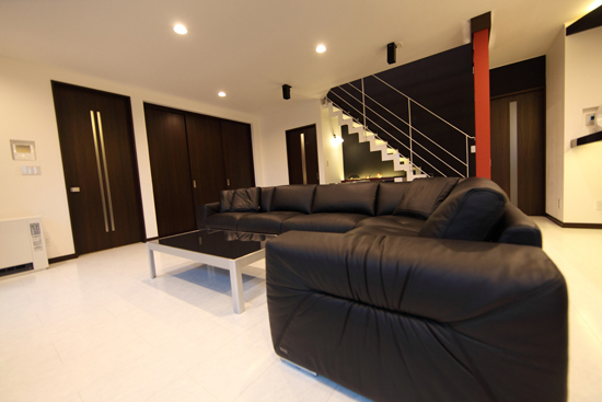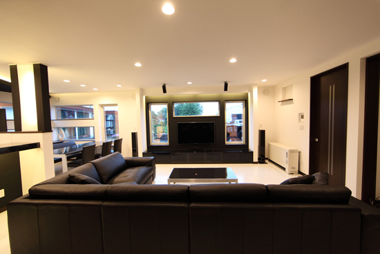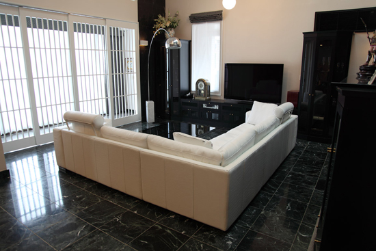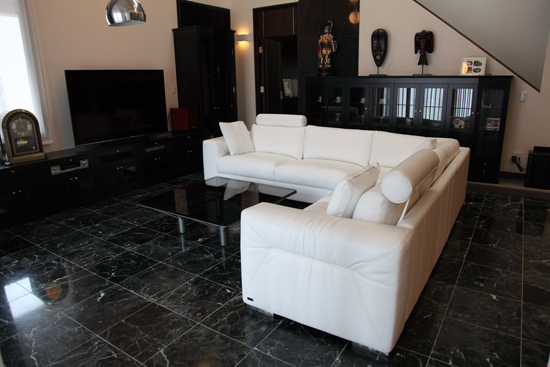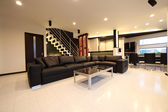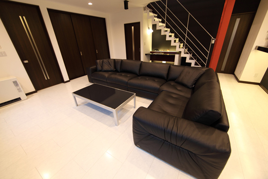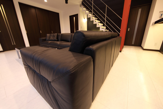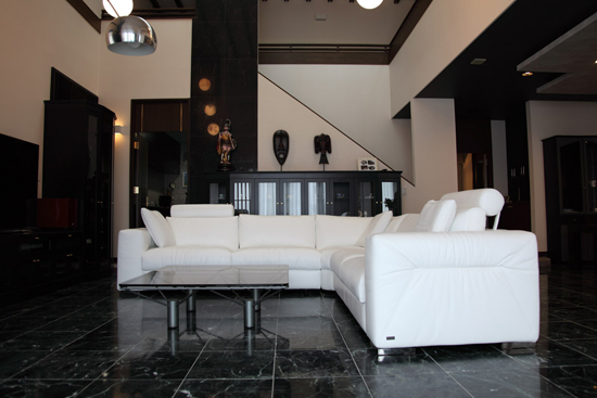 新居の家具を揃える上で、まずはこのソファを決めて戴いたとの事でした。 真っ白な床に黒の家具で統一された素敵なモノトーンの空間でした。