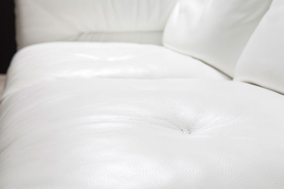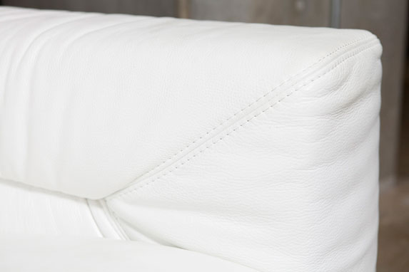ソファの背面はクロコダイル調の型押し仕上げとなっております。