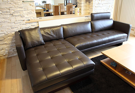 札幌市中央区宮の森 S様邸 店舗に展示しておりましたコンパクトなカウチソファ(ブラウン)をご購入戴きました♪ ヘッドレストを追加ご注文戴きましたので現在入荷待ちです。 総横幅が204cmですが肘掛が薄いデザインのため 座面積は十分な広さが取れるように設計されてます。