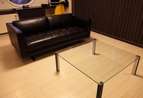 室蘭市港北町 イワクラホーム様モデルハウス スリガラスのダイニングテーブルとリビングテーブルは 同じデザインの製品で合わせて戴き 椅子はホワイト鏡面仕上げにする事で 清潔感のある明るい空間に落ち着いております。 ソファはライトグレーのレザーにブラウンの木製脚が ポイントとなり上品な空間を演出しております。 リビングテーブルの詳細はこちらへ ダイニングテーブルの詳細はこちらへ