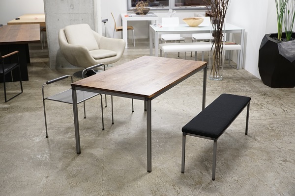 ダイニングテーブル サイズ:W1400 D800 H700 mm 素材:ウォールナット無垢材 オイル仕上 脚:スチール 金額:219,800 yen 送料:札幌 / 8,000yen (その他地域はお見積り) 納期:都度ご相談ください。 消費税別途