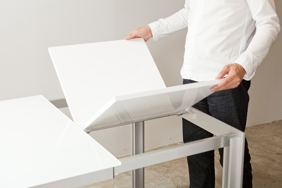 当初はシンプルな白色鏡面仕上げのテーブルで検討されておりましたが 6人くらいでテーブルを囲う機会が思ったよりあるようで この伸長式のテーブルにして良かった!とおっしゃって戴きました♪