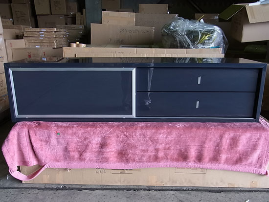 店頭・NETでも一番人気のテレビ台です。 薄型化したテレビに合わせて省スペース対応し、奥行きを45cmに設計してます。 ガラス扉がスライド式になっているのも 観音扉式のテレビ台とと比べると余計なスペースを必要としません。 引き出しはサイレント式でDVDやゲームソフトを十分に収納出来ます。 使い勝手や収納力といった実用性を兼ね備え 加えてスッキリとしたスタイリッシュなデザインが人気の秘訣です。 グレー エナメル鏡面仕上げ (艶があり、光沢が美しいです。) 脚:アルミニウム 耐荷重:80kg ※本体と脚部の2ヶ口になります。 テレビの重量は下記を参考にしてください。 http://www.toshiba.co.jp/regza/lineup/spec/cgi-bin/post_urPoint.cgi?name=55Z1,47Z1,42Z1,37Z1 http://www.sharp.co.jp/aquos/packing/